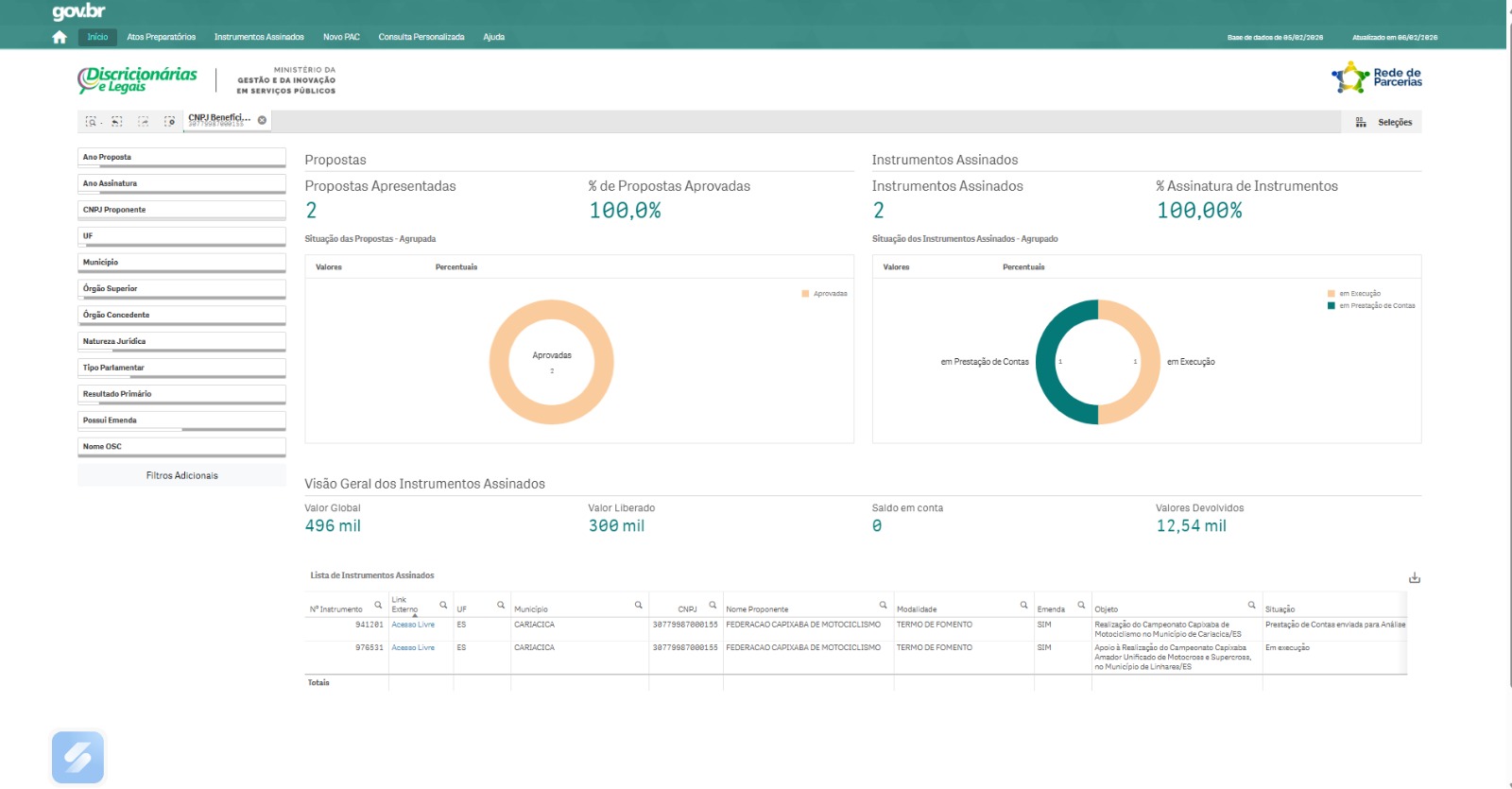 Convenente: Federação Capixaba de Motociclismo – CNPJ: 30.779.987/0001-55.